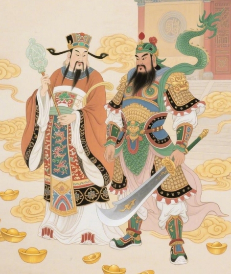 在中国民间信仰中,财神是备受崇拜的神祇,寄托着人们对财富、平安与吉祥的向往。财神分为文武两类,文财神以智慧与德行著称,而武财神则以勇猛、正义与护佑之力闻名。那么,武财神究竟是哪两位神仙?一、武财神之首:关羽——忠义化身,商贾守护神关羽,字云长,三国时期蜀汉名将,以“忠、义、仁、勇”闻名于世。其一生事迹被历代传颂,死后逐渐被神化,成为跨越儒释道的信仰象征。在道教中,关羽被尊为“关圣帝君”,简称“关帝”,其神格不仅涵盖武神、战神,更成为财神体系中的重要一员。1. 关羽成为武财神的历史渊源关羽被奉为财神,
