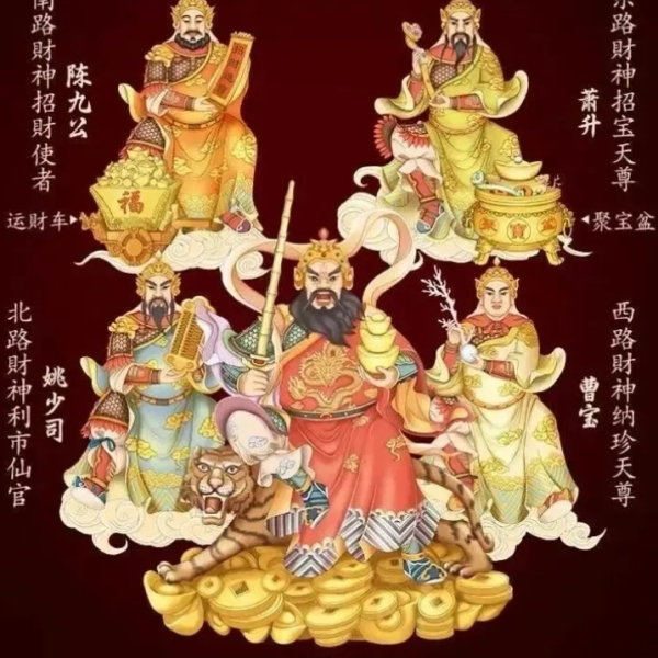 五路财神并非单一神灵,而是一个由五位财神组成的团体,象征着东南西北中五方的财富力量。在民间,五路财神有“大五路”与“小五路”两种说法。